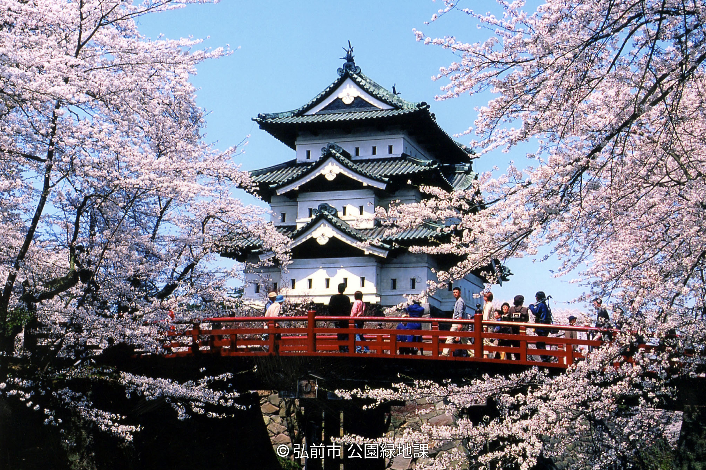 히로사키(弘前)의 히로사키성(弘前城)은 벚꽃의 명소로 일본 으뜸이라는 평이 있다. 2,600그루의 벚나무가 성 주위를 뒤덮고, 해자에 떨어진 꽃잎이 분홍색 카펫을 만드는 '하나이카다(花筏)'는 생애 한 번은 볼 가치가 있다.